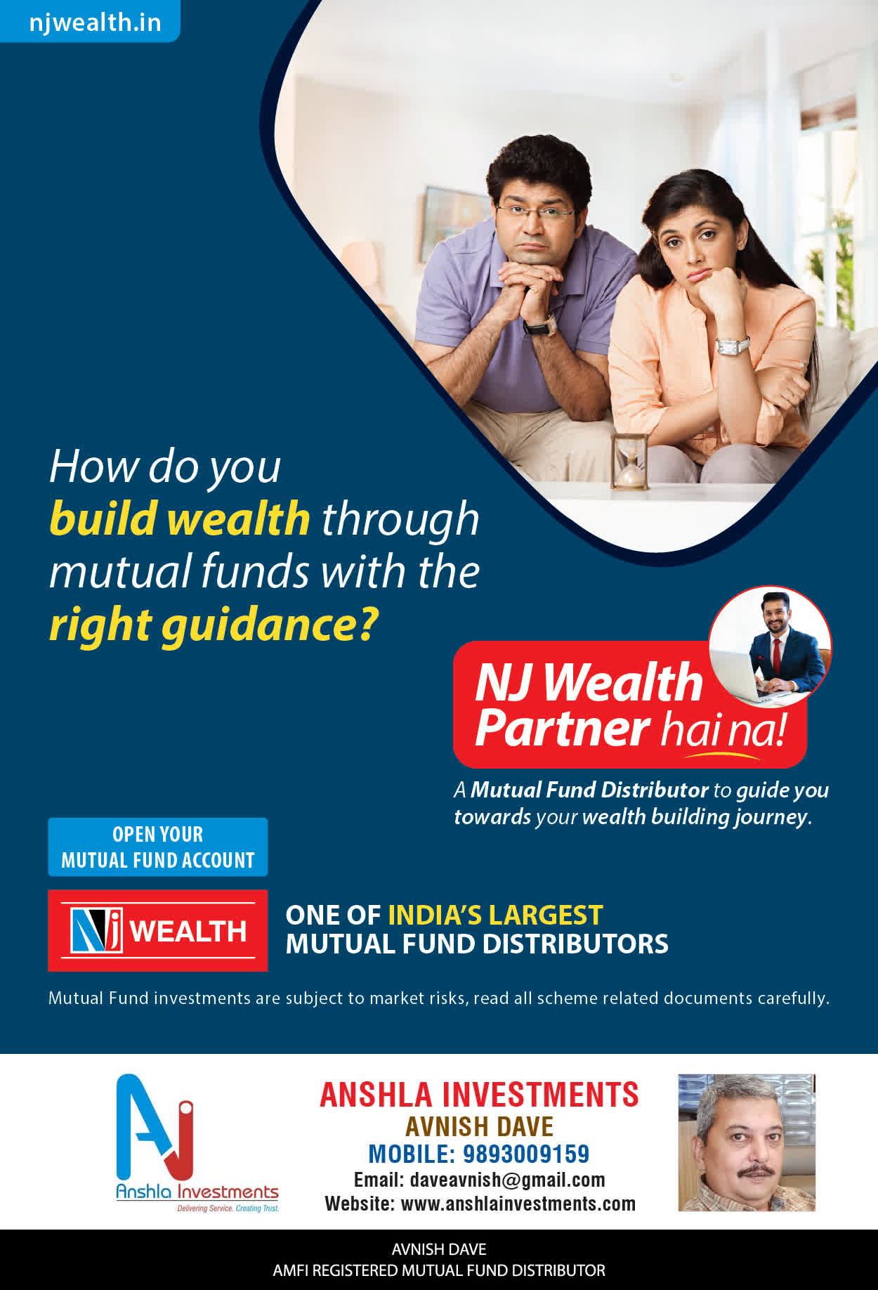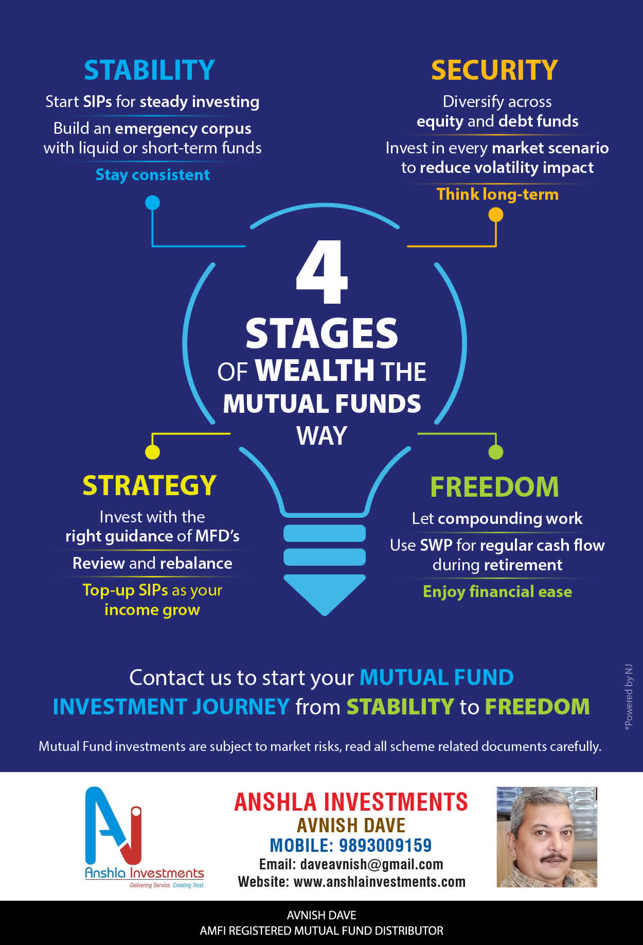 At ANSHLA INVESTMENTS, offer our services through personal counsel with each of our clients after understanding their wealth management needs. Our approach is to enable our client's to understand their investments, have knowledge of investment products and that they make proper progress towards achieving their financial goals in life.